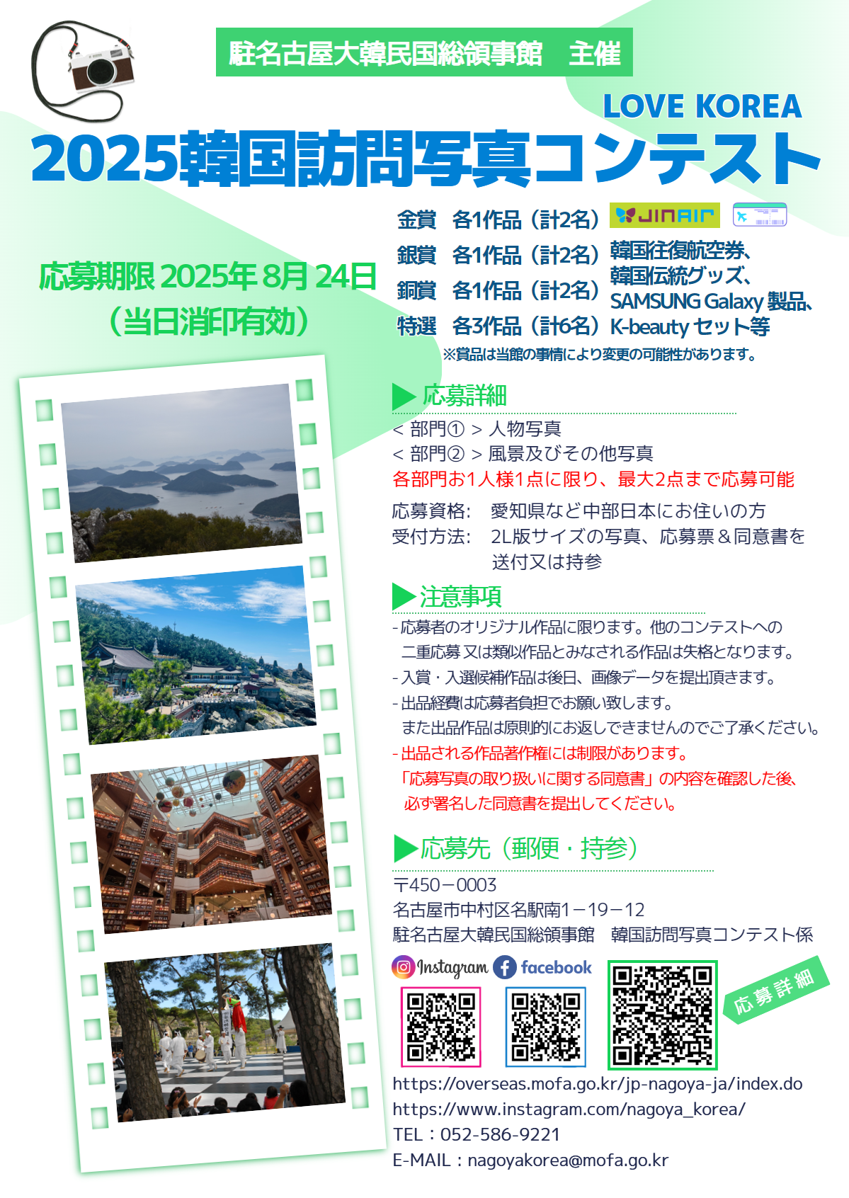 駐名古屋大韓民国総領事館 韓国訪問写真コンテスト係