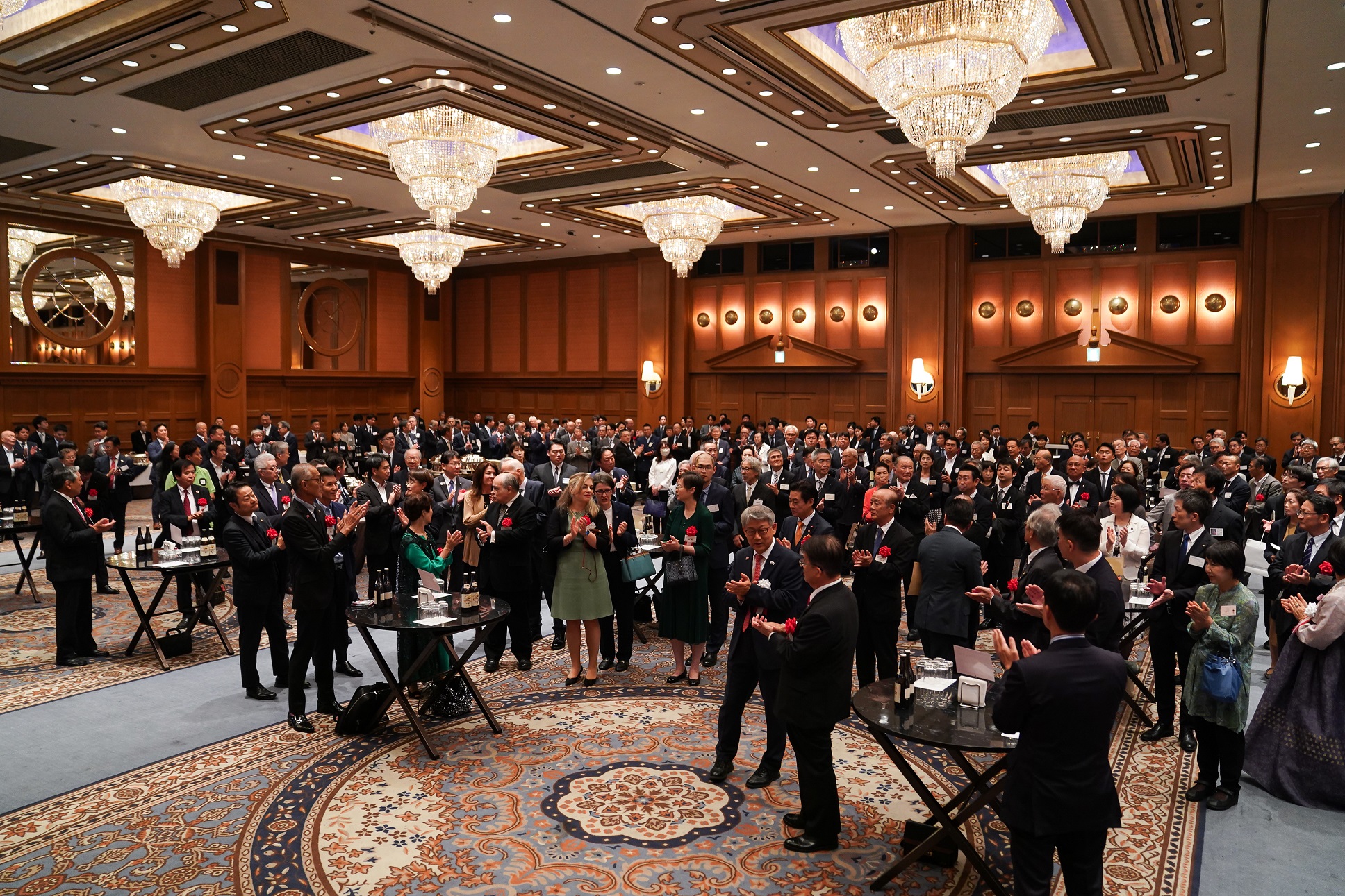 김성수 총영사는 인사말을 통해, 한일 국교정상화 60주년을 맞이하는 역사적인 해에 제4357주년 개천절을 기념하는 뜻깊은 자리에 참석해준 데에 대해 사의를 표하며, 우리 대통령 취임 후 처음으로 일본을 방문하여 정상 간 셔틀외교가 안착되는 등 양국간 모든 분야에서 교류와 협력이 확대・심화되고 있다고 평가하였습니다.