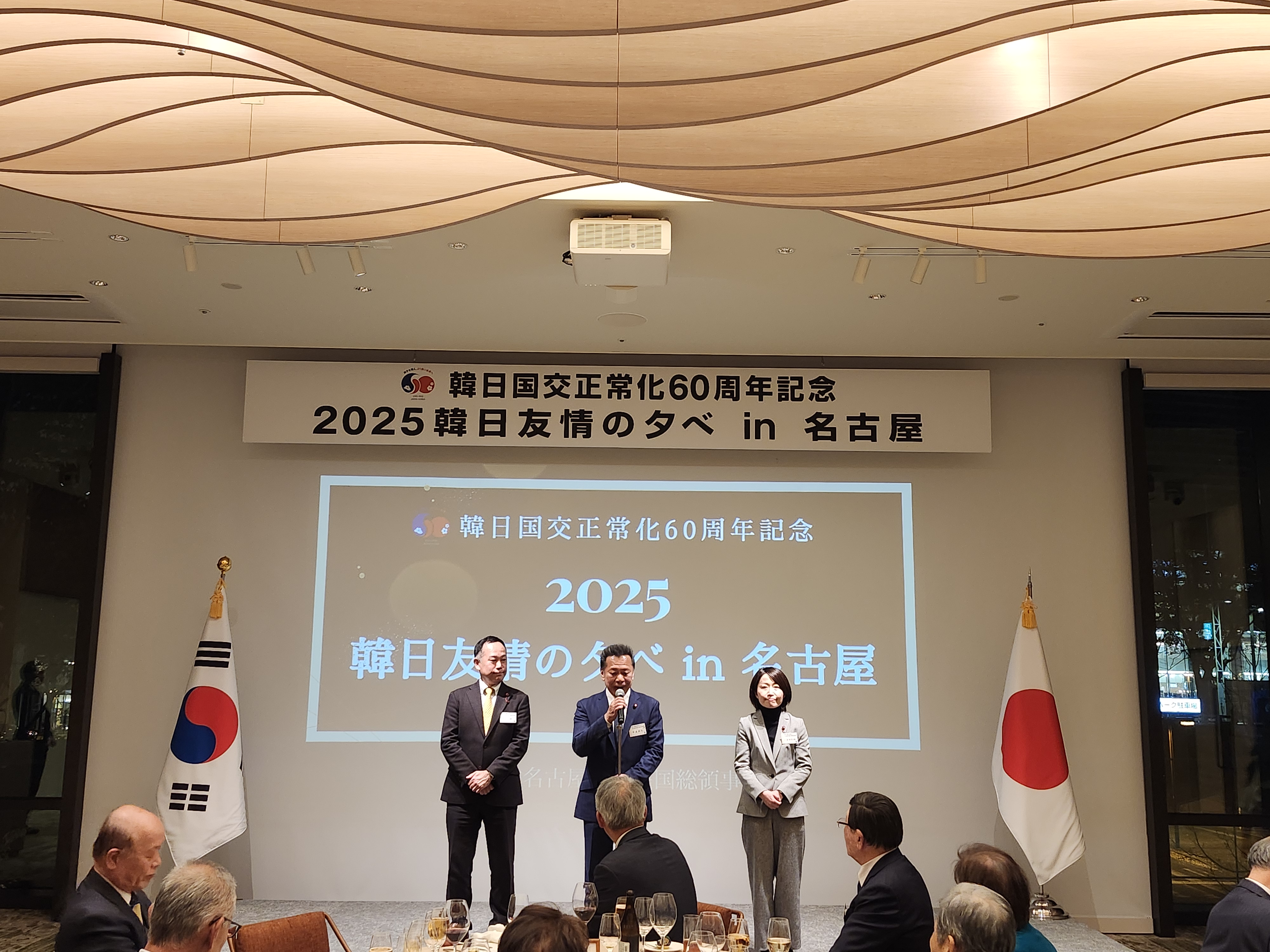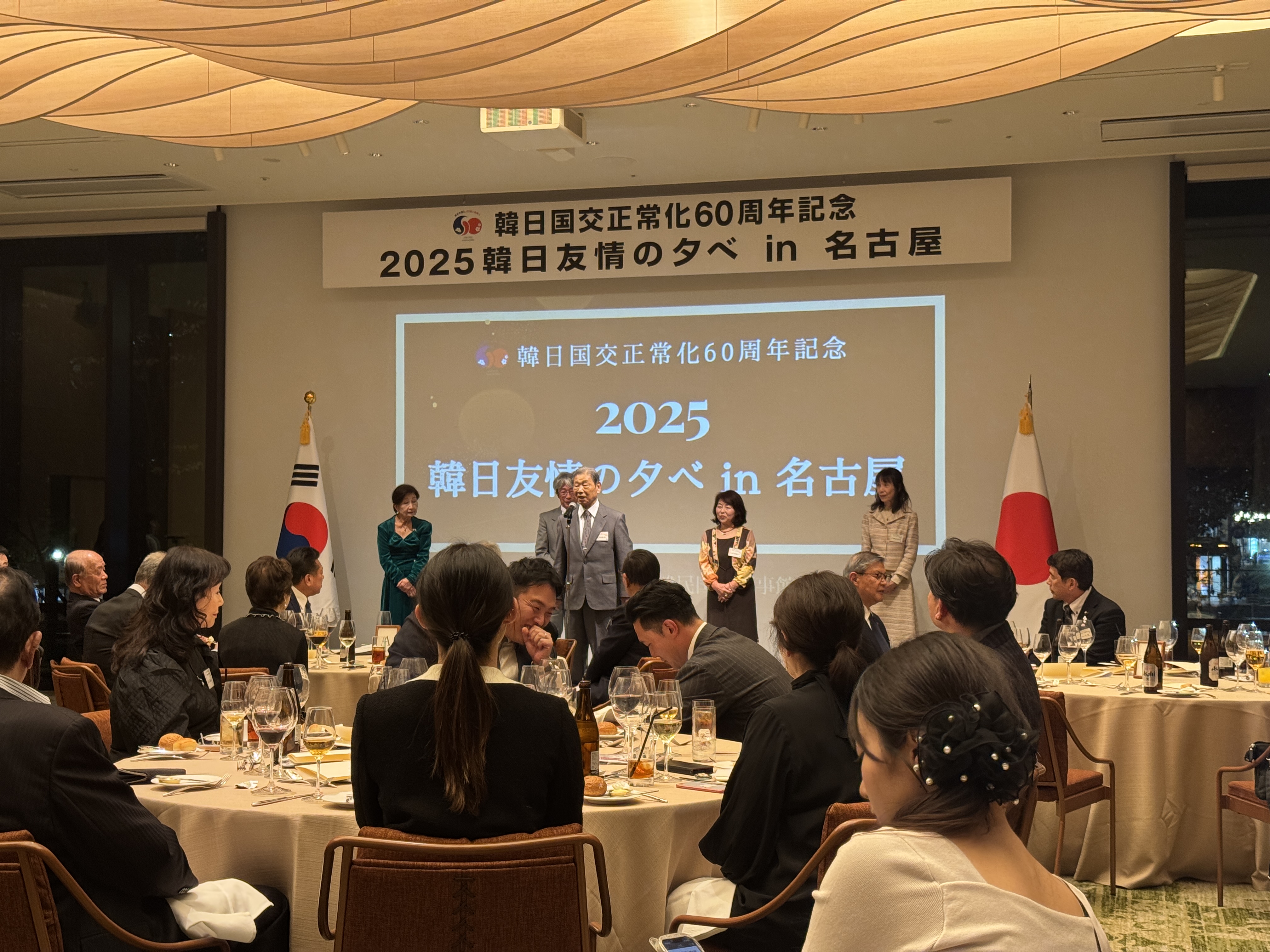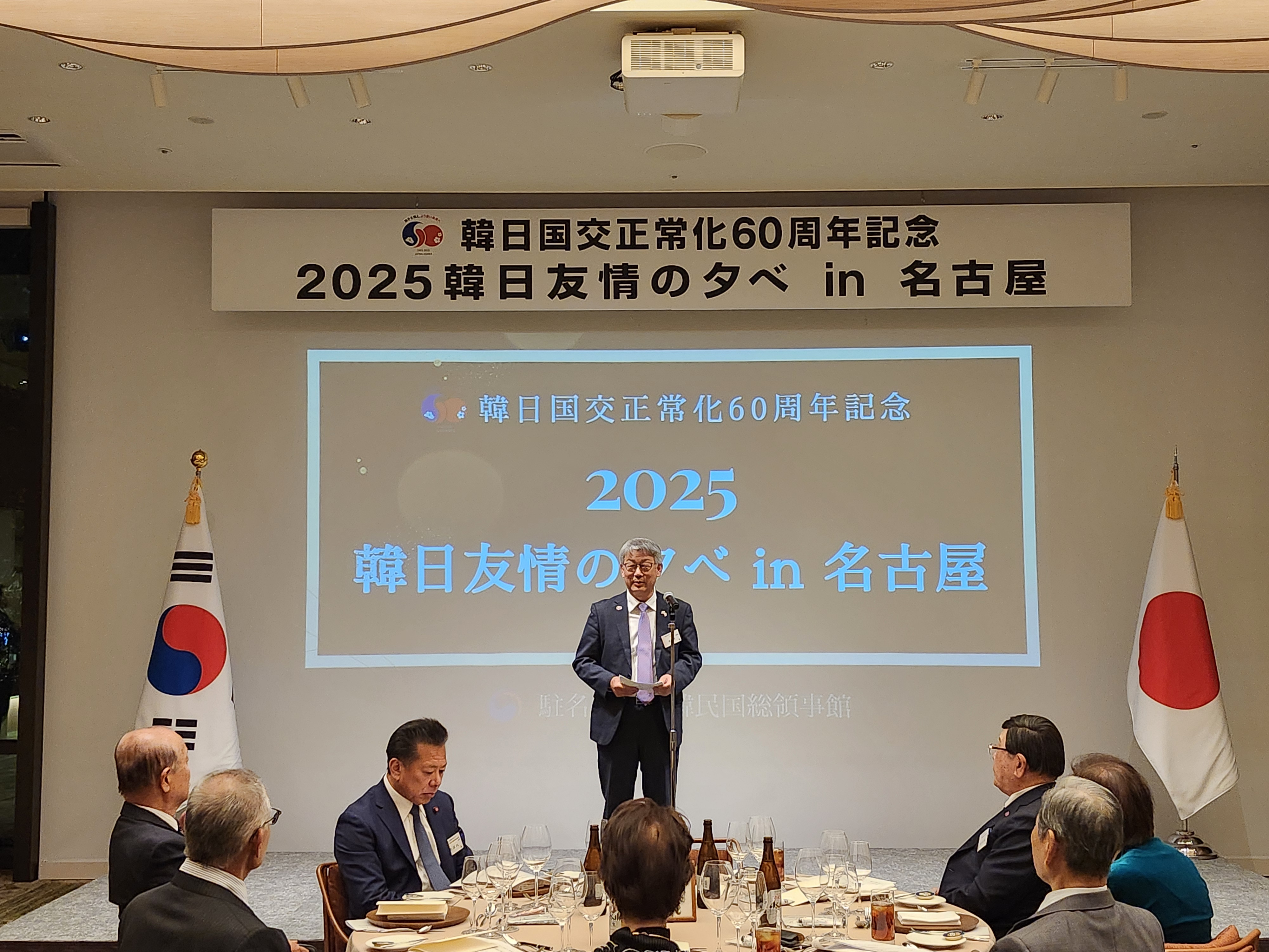 주나고야총영사관은 12.10.(수) 나고야 티아드 호텔(TIAD, Autograph Collection)에서 중부일본 지역 일한 친선 협회, 나고야시의회 일한의원연맹, 관할 민단 단장, 한일 우호 문화 교류단체, 당관 SNS 및 홍보 서포터즈들을 대상으로「한일 국교정상화 60주년 기념 : 2025 한일 우정의 밤 in 나고야」를 개최하였습니다.